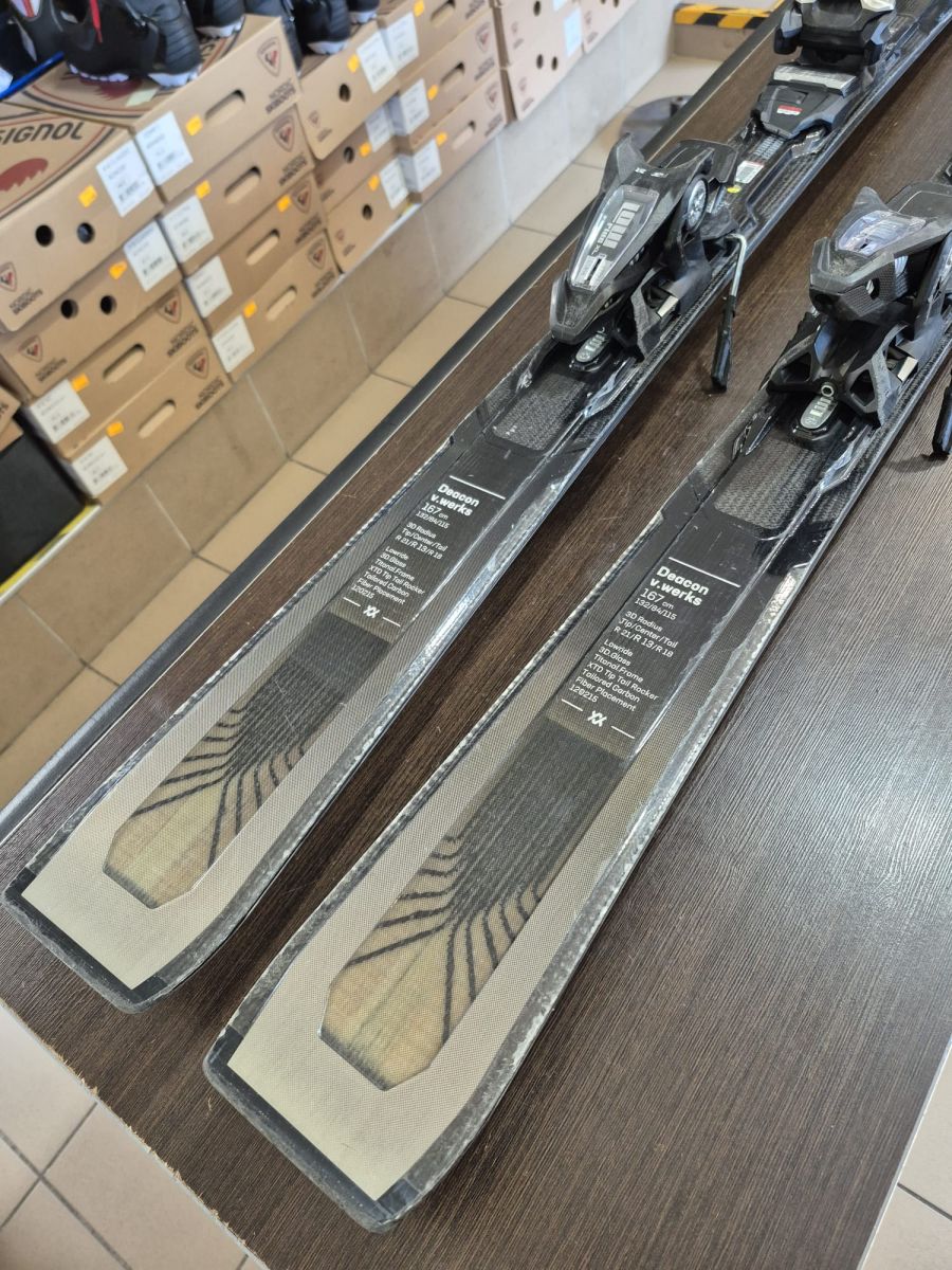 Narty Deacon V. Werks są nartami elitarnymi. Narty są bardzo lekkie i wyposażone w płaszcz karbonowy wzmocniony tytanem i strukturą 3D Ridge. Materiały, które są zastosowane w konstrukcji narty są precyzyjnie najwyższej jakości dla osiągania najwyższych osiągów. Narty Deacon V-Werks są szybkie oraz precyzyjne. Narty są ultralekkie, posiadają drewniany rdzeń oraz są ręcznie robione. Są to Narty All mountatin, w których ułożono w strukturze narty siatkę indywidualnych włókien węglowych. Największa ich koncentracja jest na dziobie i piętce czyli miejsca, od którego zależy dynamika oraz precyzja.